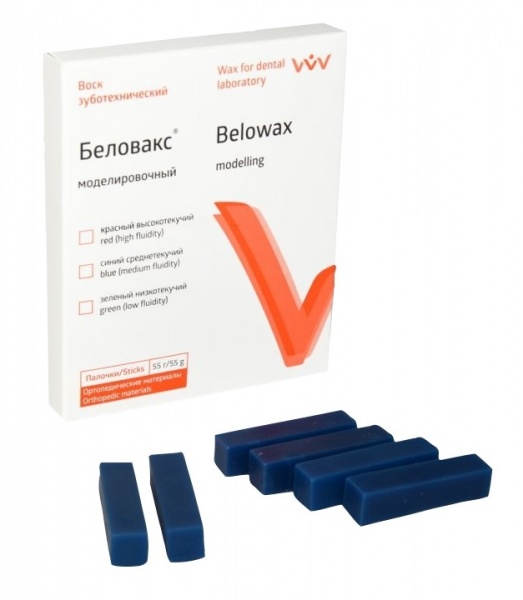 Основными компонентами являются парафин, церезин, натуральные и синтетические смолы, модификаторы и красители. Воск имеет хорошие пластические свойства (текучесть под нагрузкой в интервале температур (37-45)оС), обладает малой тепловой усадкой, легко моделируется зуботехническими инструментами, не изменяет своих свойств при неоднократном расплавлении. При выгорании зольность воска моделировочного не превышает 0,02 %.