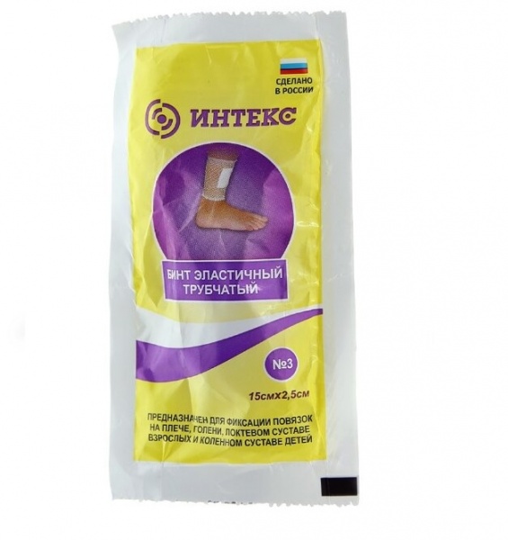 Эластичный бинт для фиксации сухих и влажных повязок на плече, голени, локтевом суставе взрослых и коленном суставе детей.
