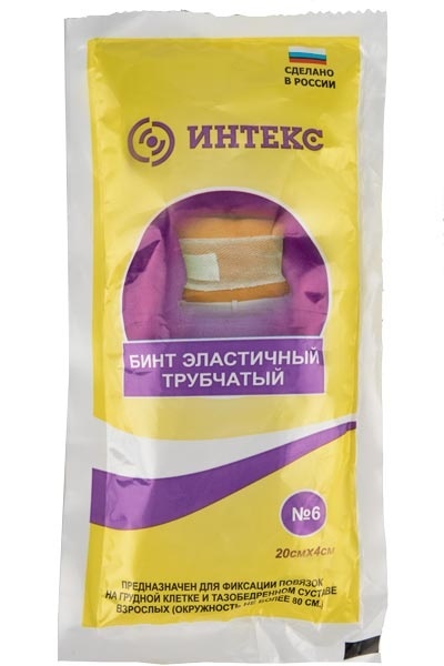 Перед вскрытием убедитесь, что срок годности трубчатого бинта №6 не просрочен, если срок годности хороший – вскройте разовую упаковку. Достаньте из упаковки трубчатый бинт «ИНТЕКС» №6 и аккуратно натяните его на место, где закреплена фиксируемая салфетка или повязка. После чего, займитесь распределением трубчатого бинта №6 по окружности места травмы так, чтобы осевые нити сетки были прямыми. Следите за маркерной полосой на поверхности бинта, она не должна перекручиваться.
