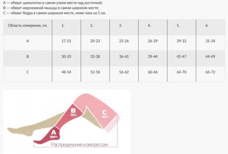 | Обхват голени, в см | 30-35 | 33-38 | 34-41 | 39-44 | 42-47 | 44-49 |