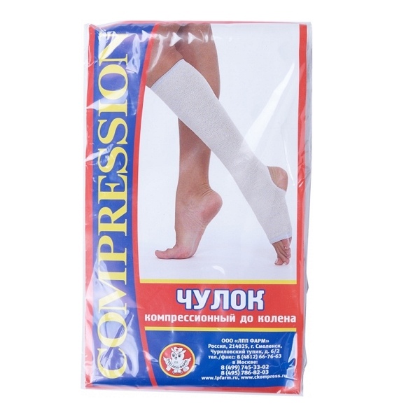 Инструкция по применению: надевать чулок утром, лежа, постепенно натягивать его, разглаживая складки.