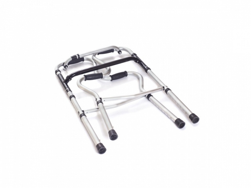 В состав конструкции входит прочный алюминий, он обеспечит долговечность устройству. Максимальная нагрузка составляет 100 кг. С помощью резиновых наконечников ходунки будут устойчивы даже на скользкой поверхности. Ходунки можно удобно сложить и хранить в шкафу, небольшой вес позволит комфортно их переносить.