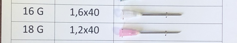 | Размер иглы (G), длина (дюйм) | Наружный диаметр иглы х длина, мм | Цветовой код |