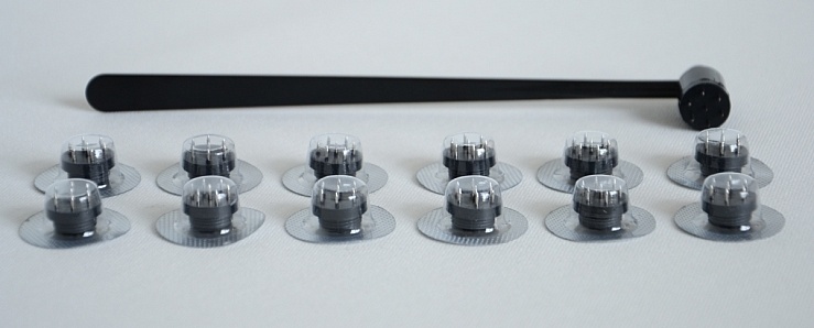 - В комплекте – 12 сменных насадок в индивидуальных стерильных блистерах;