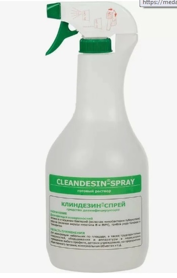- применяется для обеззараживания поверхностей (кроме тех, которые повреждаются под воздействием спиртов – покрытых лаком, из плексигласа и других) способом орошения.