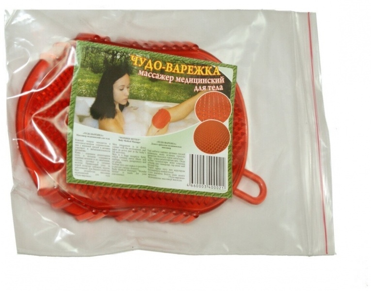 Массажер для тела "Чудо-варежка" имеет две разных по назначению поверхности: