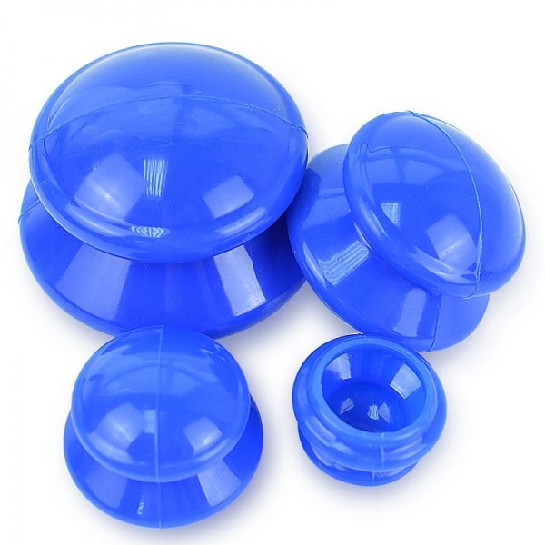 Набор разных по велчине вакумных резиновых банок для баночного массажа с диаметрами 22, 35, 50 и 65 мм позволяет делать массаж на любых проблемных участках тела включая лицо, кисти, локти.
