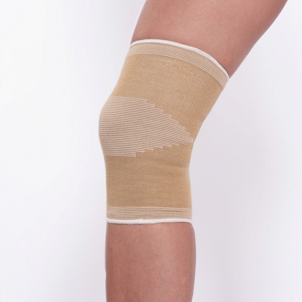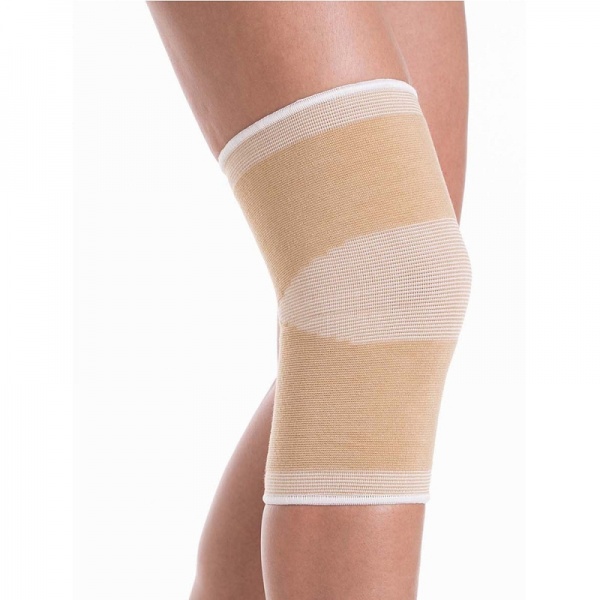 Бандаж коленного сустава F 1102 выполнен из медицинского эластика, не имеет дополнительных ребер жесткости и обладает легкой степенью фиксации. В области колена вязка материала более разряженная.
