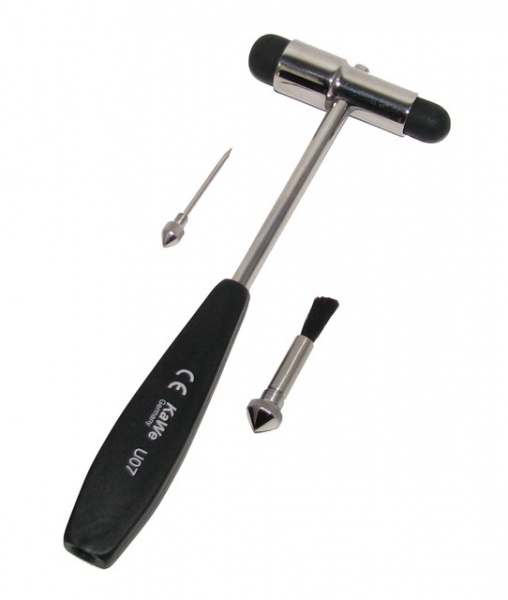 Классический неврологический молоток Витрое. Пластиковая не скользящая анатомическая рукоять, хромированная металлическая головка. С иглой и кисточкой. Поставляется в пластиковом пакете.