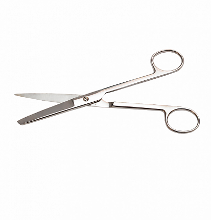 Ножницы прямые с одним острым концом предназначены для разрезания биологических тканей, шовного материала при проведении операций и лечебных процедурах.