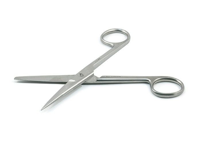Ножницы хирургические являются двухдетальным инструментом. По конструкции они бывают с врезными винтами и полуврезными замками (разъемные). Ножницы применяют для рассечения мягких тканей при операциях, снятия швов, повязок, кройки перевязочного материала и т.д.