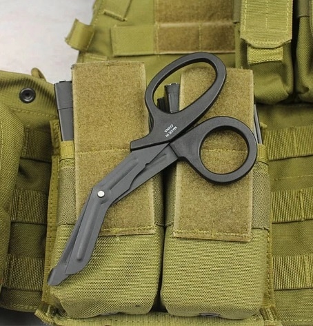 это специальные ножницы для разрезания одежды и перевязочных средств на пострадавшем. Они применяются полевыми медиками и входят в состав большинства походных аптечек. Отличительной особенностью является то, что они тупоконечные и имеют специальный изгиб, вследствие чего ими нельзя случайно порезаться или поранить больного.