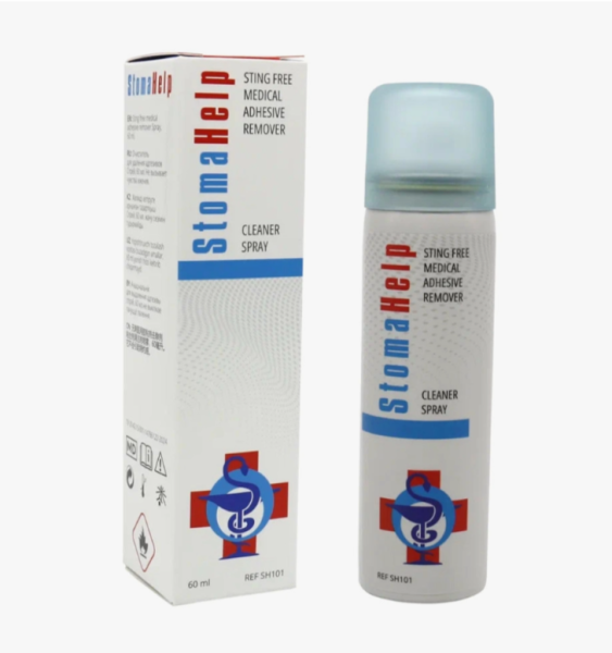 - Очиститель для удаления адгезивов StomaHelp не вызывает болевых ощущений после распыления;