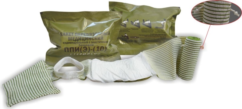 Пакет перевязочный медицинский индивидуальный стерильный с эластичным бандажом — это современное перевязочное средство, которое состоит из неподвижной подушечки или двух подушечек для наложения на рану, затяжной петли, фиксирующего эластичного бинта, страховочной и фиксирующей застежек-липучек.