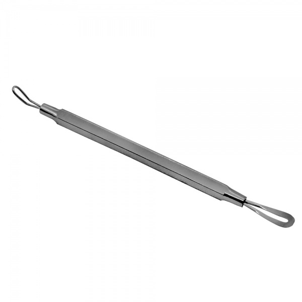 Петля имеет две рабочие поверхности. С одной стороны располагается плоская петля для избавления от прыщей. С другой стороны расположена петелька меньшего диаметра, которая поможет избавиться от черных точек.