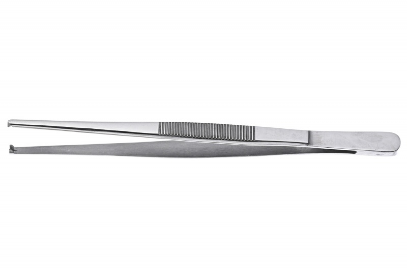 Пинцет хирургический общего назначения 250х2,5 мм – хирургический инструмент, предназначенный для захватывания краев раны и крепкого удержания тканей, в основном кожи.