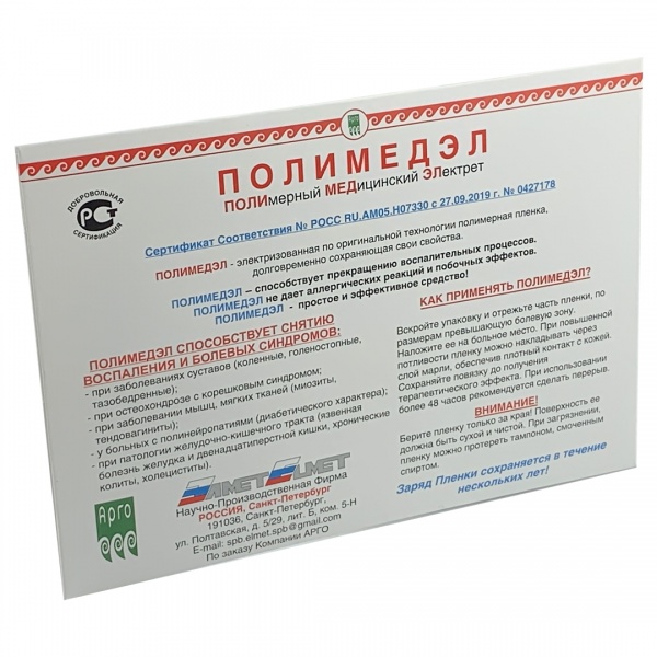 Купить пленку Полимедэл Арго стоит при заболеваниях суставов, мышц, переломах и ушибах, проблемах с желудочно-кишечным трактом, воспалительных процессах, вегетативных расстройствах, восстановлению после инсульта.