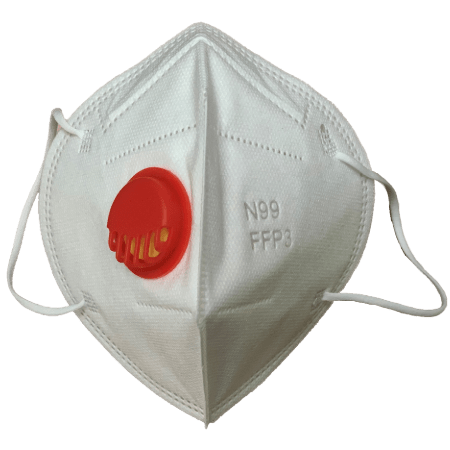 Респиратор складной (фильтрующая полумаска) KN99 с классом защиты FFP3 с клапаном выдоха (FD315G2) с регистрационным удостоверением на медицинское изделие и сертификатом соответствия, предназначен для защиты органов дыхания от аэрозолей (пыли, туманов, дымов), бактерий и вирусов, до 50 ПДК (FFP3). Респиратор складной хорошо прилегает к различным типам лица и следует за мимическими движениями. Сохраняет форму и не соприкасается с внутренней стороной с лицом при вдохе. Клапан выдоха эффективно отводит образующееся тепло, выдыхаемый углекислый газ и влагу, снижает уровень запотевания очков, обеспечивает легкость дыхания и комфорт при использовании. Фигурная носовая часть респиратора снижает риск запотевания очков. Мягкая потовпитывающая подкладка под носовым зажимом и гладкий внутренний материал для мягкости и комфорта. Имеет сертификат соответствия и регистрационное удостоверение на медицинское изделие.