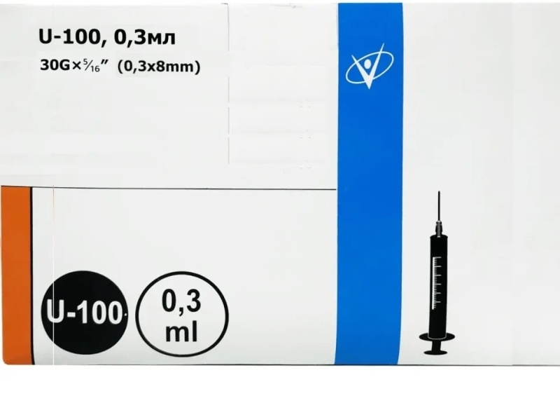 - Вид инсулинового шприца: U-100.
