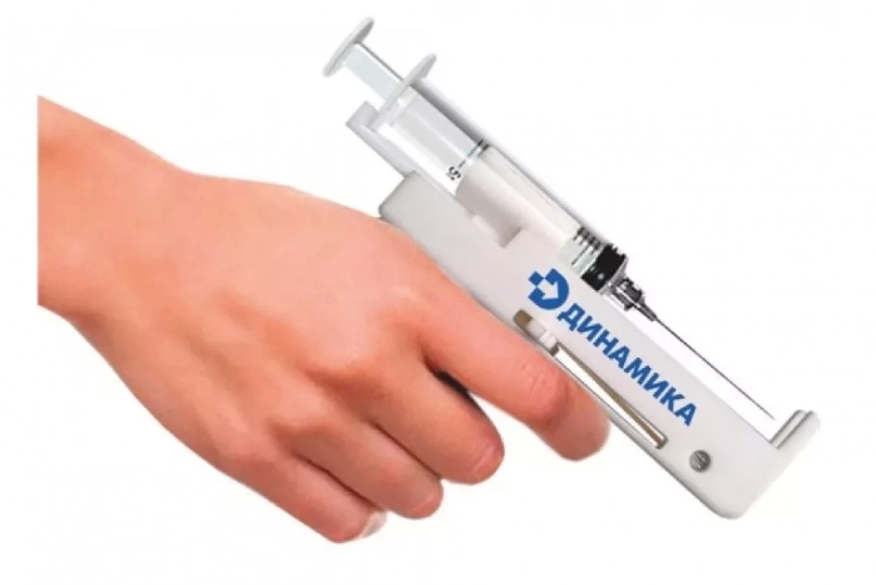Тщательно вымойте руки с мылом, вскройте ампулу и наберите в шприц раствор для инъекции. Установите шприц в устройство, следуя инструкции. Обработайте место инъекции дезинфицирующим средством и установите шприц-пистолет на расстоянии 2-3 мм от кожи под углом 90 градусов. Резко нажмите на курок — игла войдет в мышцу. Убедитесь, что игла не попала в сосуд — в шприце не должна появиться кровь. Если это произошло, необходимо сделать новую инъекцию в другом месте, отступив на 1-1,5 см. Плавно надавите на поршень и медленно введите лекарственное средство. Быстрым движением руки удалите иглу, а к месту инъекции на 1-2 минуты прижмите стерильную салфетку с дезинфицирующим раствором.