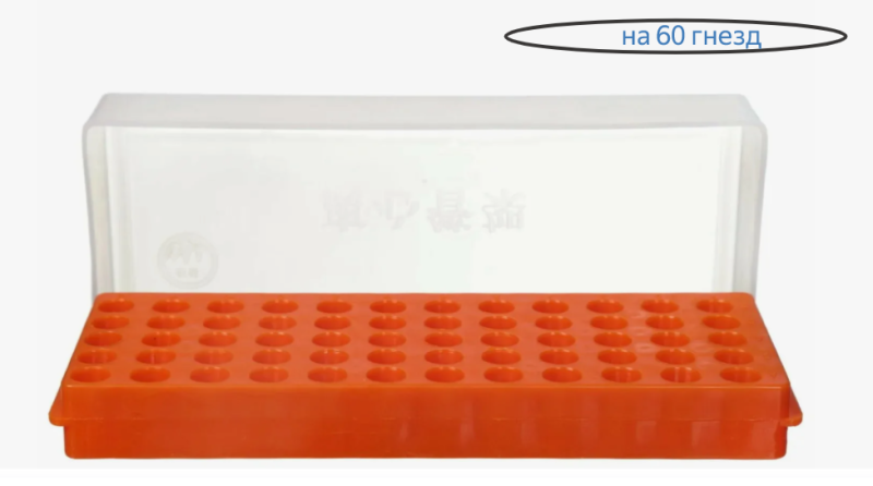 Штатив предназначен для пробирок Эппендорфа. Гнезда расположены с двух сторон корпуса, что позволяет устанавливать в него 60 пробирок объемом 0,5; 1,5 и 2,0 мл. Имеется буквенно цифровая маркировка гнезд. Штатив изготовлен из полипропилена. Закрывается прозрачной крышкой. Автоклавируется при +121°С. В индивидуальной упаковке.