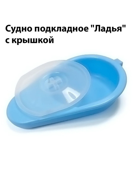 Полимерное подкладное судно «Ладья» с крышкой имеет характерную форму, облегчающее его использование. Нижняя его часть сужена и находится немного ниже, чем сама емкость, что позволяет быстро и безболезненно поместить приспособление под лежащего человека. А плотно прилегающая крышка позволяет предотвратить разливание содержимого и распространение неприятного запаха.