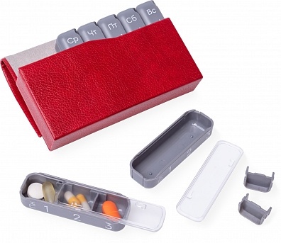 Таблетница ПИЛЮЛЯ Премиум содержит 7 отдельных контейнеров, которые соответствуют дням недели: ПН, ВТ, СР, ЧТ, ПТ, СБ и ВС. Каждый контейнер состоит из 3х отделений. Ячейки отделений имеют сдвигающиеся перегородки, которые можно регулировать в ширину или извлечь в случае необходимости.